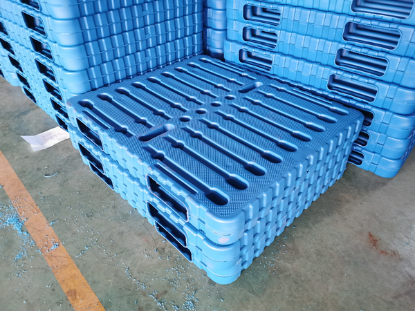 針對中國各個地方氣候條件,目前有多種HMWHDPE塑料可以用于高強度吹塑托盤的成型,如新疆獨山子石化生產(chǎn)的5420、山東齊魯石化生產(chǎn)的1158等塑料,采用國產(chǎn)超大型中空成型機生產(chǎn)線如:TDB-2000L、TDB-1600L等超大型中空吹塑一次成型設備吹塑成型,其制品中空吹塑托盤比木質(zhì)、鐵質(zhì)、注塑托盤更輕、結(jié)實耐用,使用成本更低。